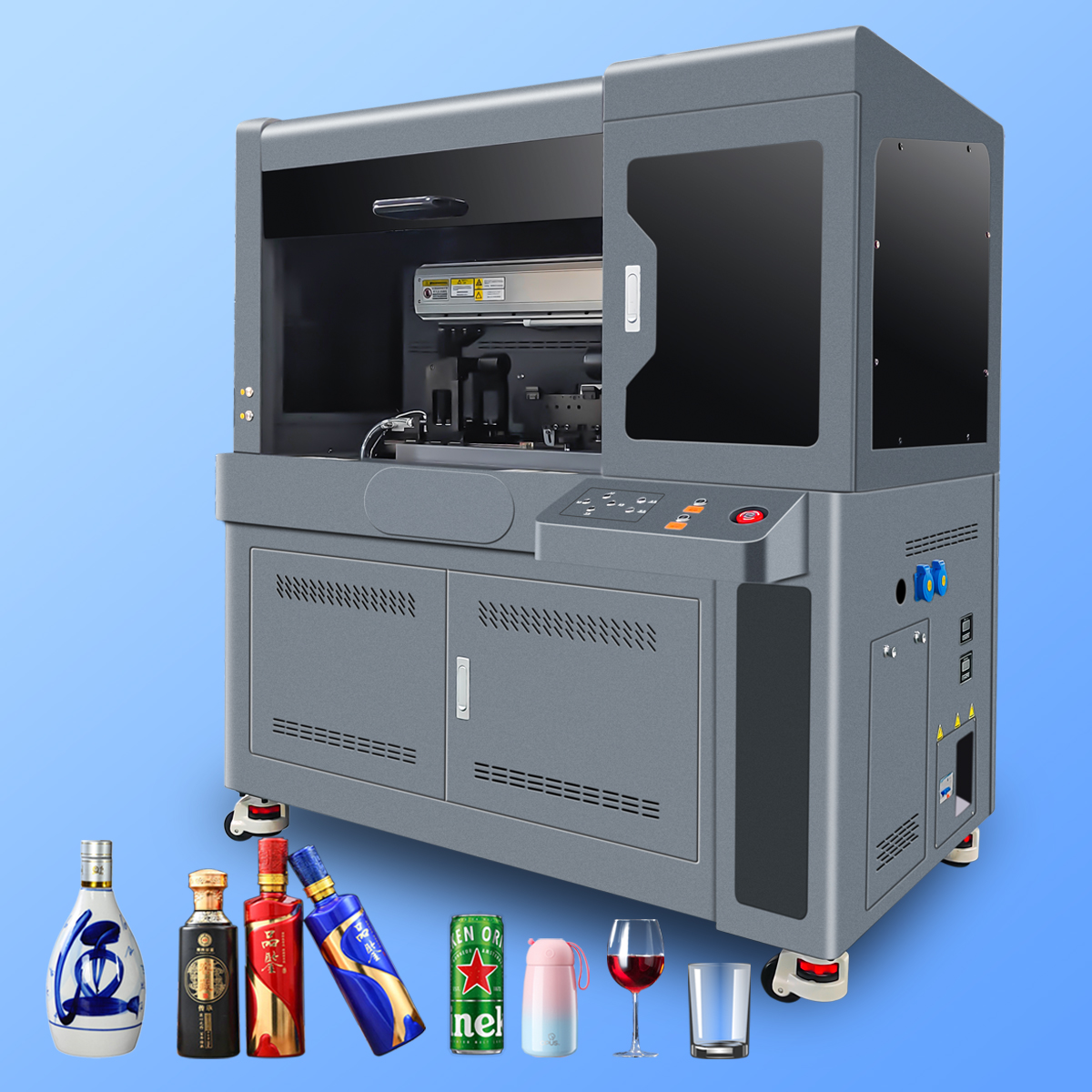 在個(gè)性化定制的浪潮中,圓柱體UV打印機(jī)以其獨(dú)特的打印能力,為酒瓶和杯子等圓柱形物品的裝飾帶來(lái)了革命性的改變。這種打印機(jī)專門(mén)設(shè)計(jì)用于在圓柱體表面進(jìn)行高精度的圖像打印,